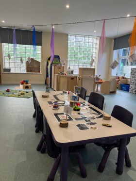 As well as many indoor experiences, we also embrace outdoor learning, and all rooms have free flow access to outdoor spaces . We also have regular outings and visit community facilities, local attractions, country parks, etc. traveling on the nursery minibuses . Our Yellow and Green Room children also take part in Forest Kindergarten sessions in local woodland areas. Our Green Room children also visit a local Care Home weekly as part of our Intergenerational Project.